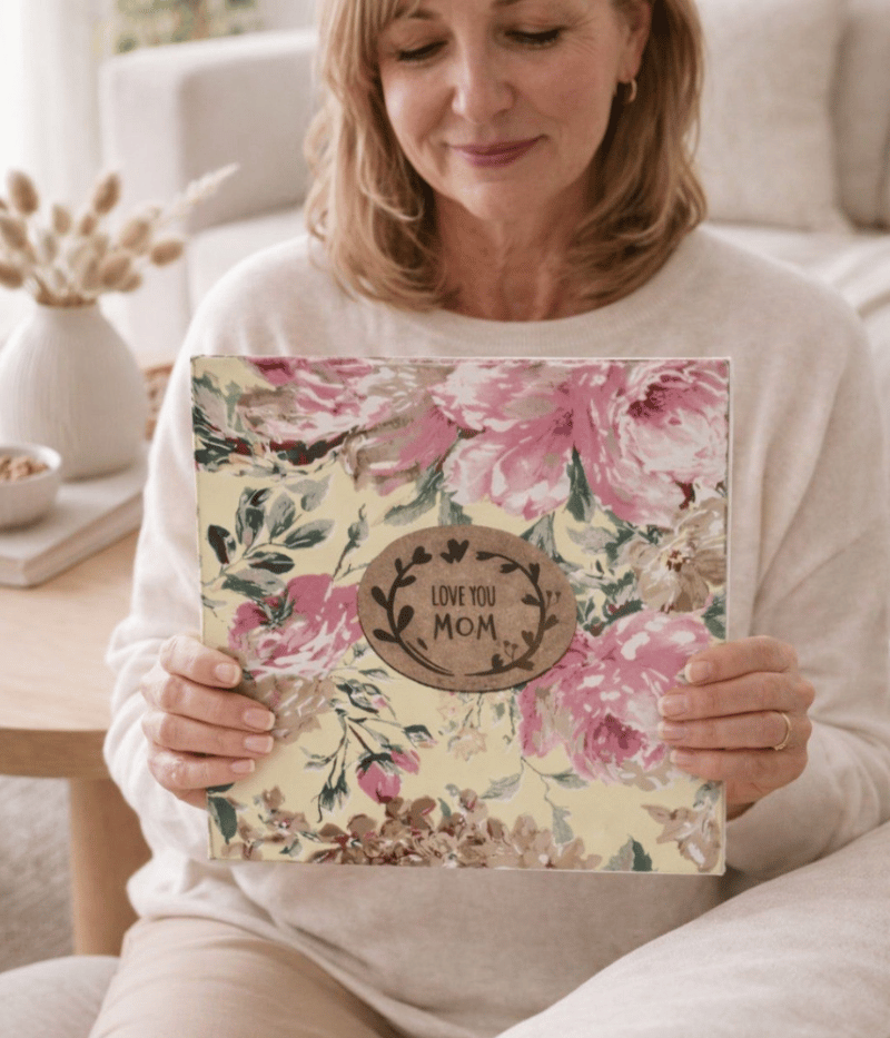 Album fotografico artigianale formato 25×25 cm, composto da 10 interni, perfetto come regalo per la Festa della Mamma. Realizzato con cura nei dettagli, è pensato per custodire i ricordi più belli in un prodotto elegante e senza tempo.