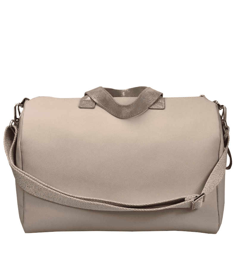 Comoda e pratica borsa cambio artigianale realizzata in saffiano panna e pelle scamosciata nuvolata rosa, un abbinamento perfetto! I materiali con cui è stata creata sono tutti 100% Made in Italy per garantirti la massima qualità e resistenza nel tempo. Questa borsa passeggino è personalizzabile con nome ricamato e ha delle tasche interne e tascone esterno per inserire pannolini, biberon, chiavi e molto altro!