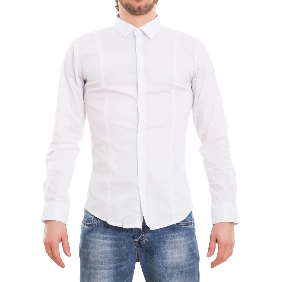 Camicia basic aderente elasticizzata, slim fit.